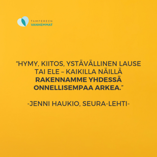 Hymy, kiitos, ystävällinen lause tai ele – kaikilla näillä rakennamme yhdessä onnellisempaa arkea."